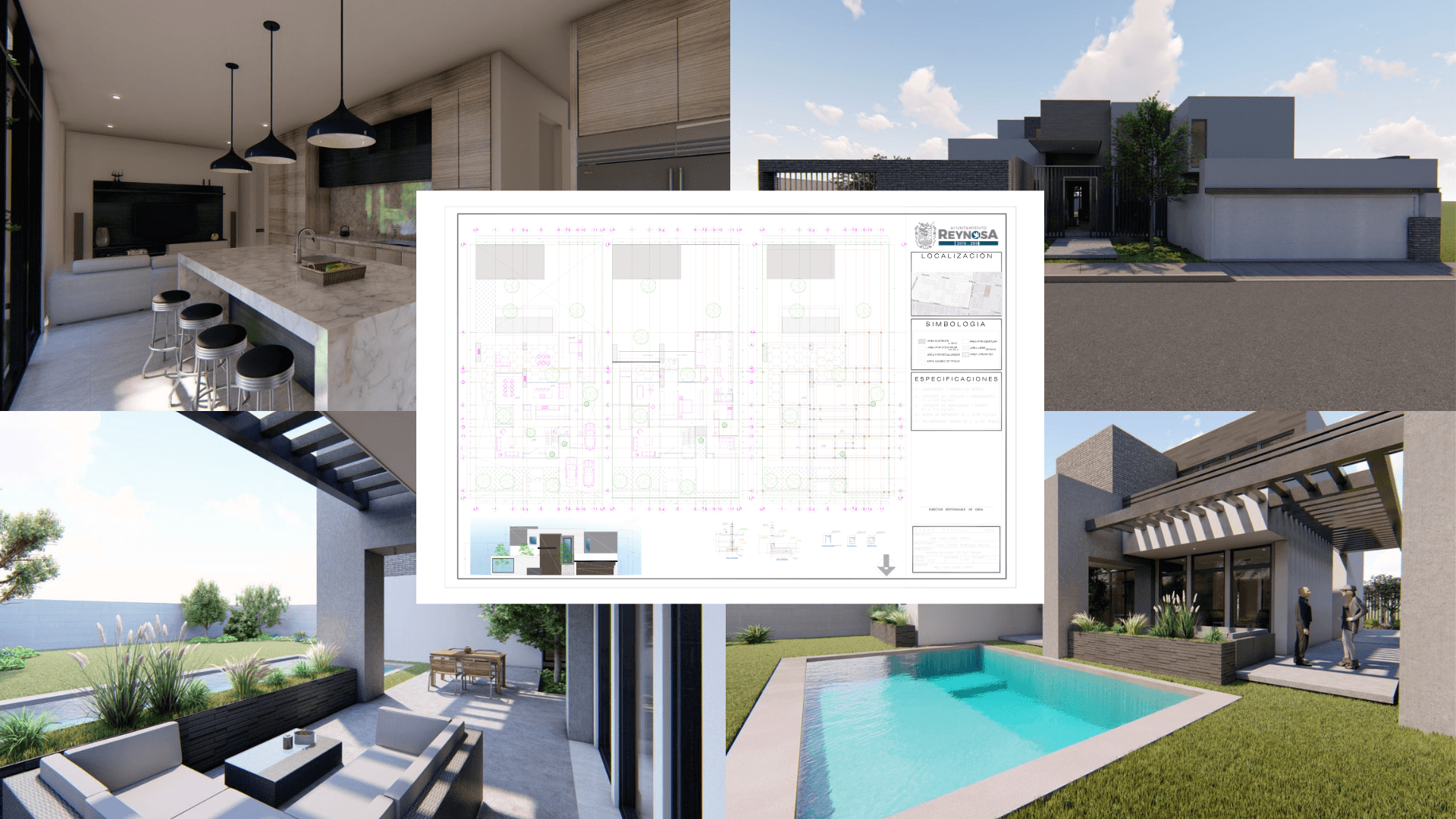 Luxury home design in Reynosa, Mexico, featuring a spacious layout, contemporary finishes, and a private pool. The residence combines elegance and modern comfort, offering open spaces, natural light, and refined architectural details throughout.