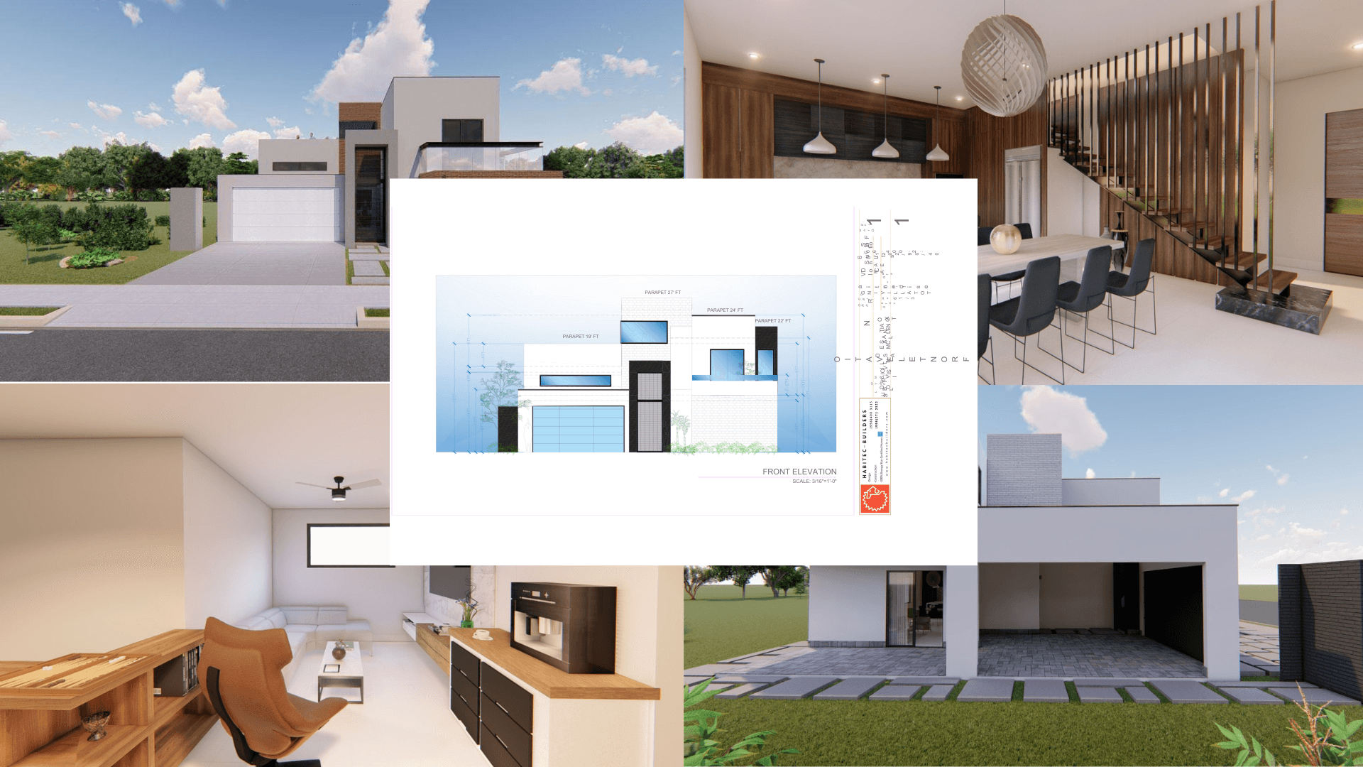 Modern two-story home design in McAllen, featuring a compact layout with sleek lines and contemporary finishes. The project emphasizes efficient use of space, natural light, and a clean, minimalist aesthetic.
