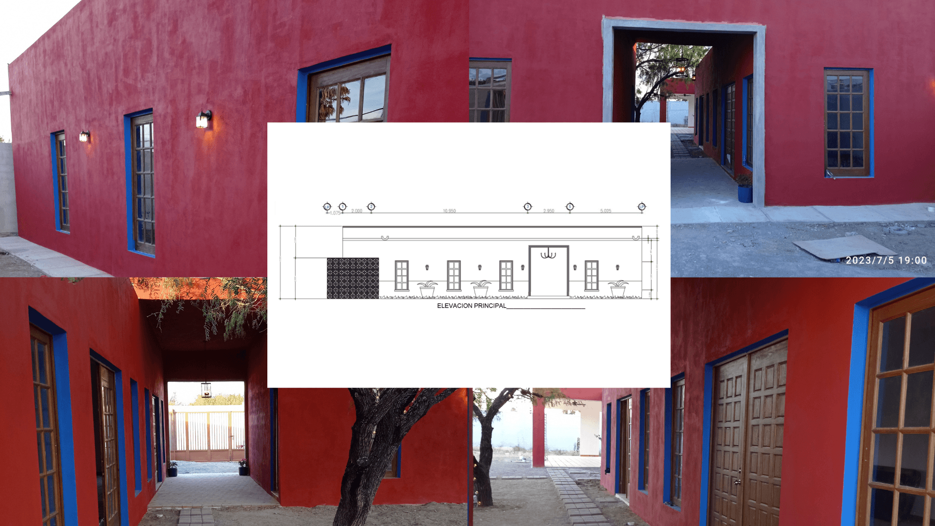 Ranch-style estate design in Zuazua, Mexico, featuring a rustic red exterior and traditional Mexican charm. Set on a large lot, the project evokes an old-world atmosphere with natural materials and timeless details. The images shown capture the construction process and do not represent the finished project.